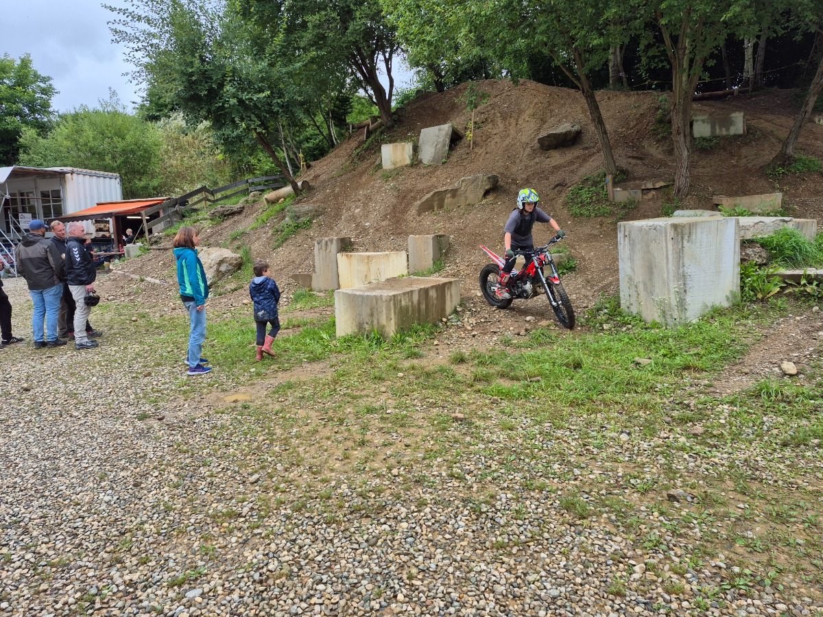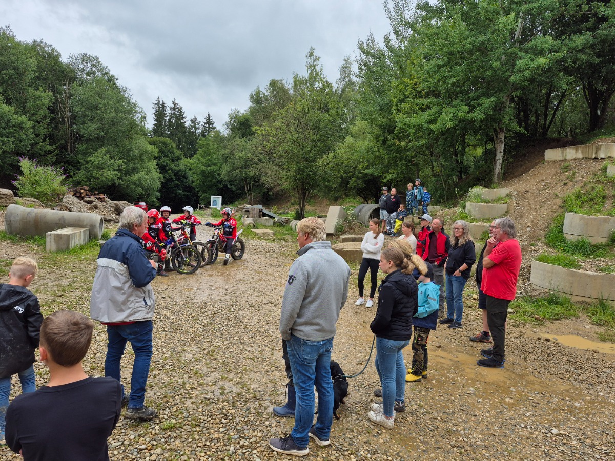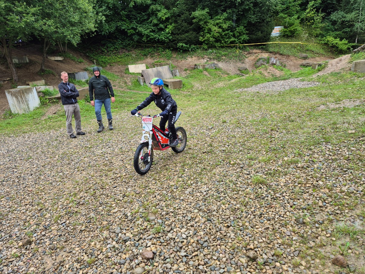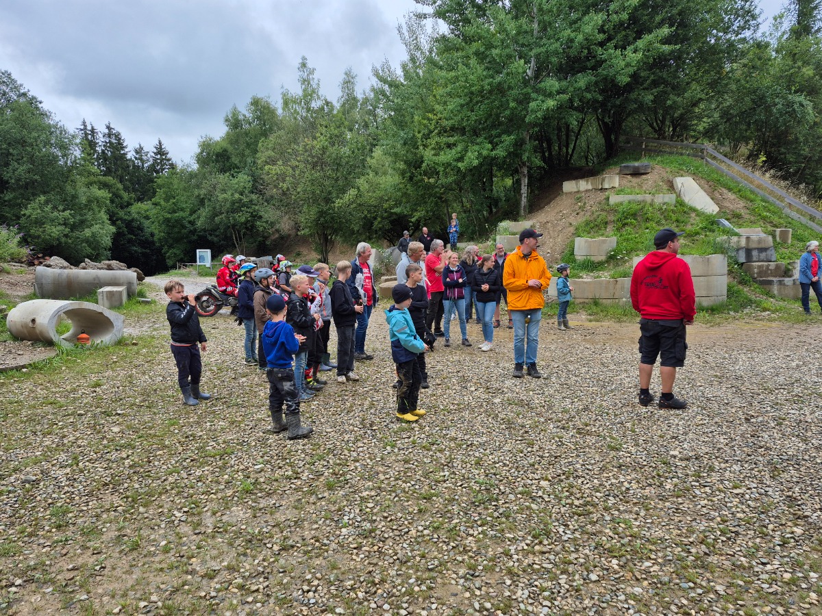 Letzten Samstag den 02.08.2025 kamen die Engelsberger Kinder wieder zu uns in den Trialpark des MSC Engelsberg. Die Plätze für das Ferienprogramm waren wieder sehr schnell ausgebucht, so das einige auf der Warteliste standen u. leider nicht teilnehmen konnten. Trotz des regnerischen Wetters hatten die Kinder im Alter von 7 – 11 Jahren ihren Spaß auf den Elektro Trial Motorrädern. Es dauerte nicht lange bis sie ein Gefühl für die Motorräder entwickelten u. immer sicherer durch die kleinen Hindernisse steuerten. Desto sicherer sie wurden, umso mutiger wurden sie auch, u. wagten sich schon einmal ins Gelände, was auch prima klappte. Die Anstrengung u. Konzentration auf den Motorrädern macht natürlich durstig u. hungrig. Dafür gab es zwischendurch auch Trinkpausen für die Kids u. zum Abschluss des Trial Fahrens noch Bratwurstsemmeln u. Pommes, was begeistert angenommen wurde. Um den Kindern einen weiteren Einblick in die Kunst des Trial Fahrens zu zeigen, präsentierten unsere MSC Trialer, vom kleinsten Fahren im Alter von 4 Jahren bis zu den Erwachsenen, was auf den Trial Motorrädern so alles bei ausreichend Training möglich ist. Die Vorführung verfolgten die Kinder u. auch die Eltern mit Begeisterung. Dafür gab es auch viel Applaus. Für die Betreuung der Kinder haben sich viele MSC Mitglieder eingesetzt. Vom Einweisen in die Fahrtechnik, beim Führen an schwierigen Hindernissen, bis zur Versorgung vom essen u. trinken. Ohne die Unterstützung der vielen motivierten Betreuer wäre das Ferienprogramm nicht so reibungslos u. erfolgreich durch zu führen gewesen. Dafür möchte ich noch einmal, allen Helfern für die erfolgreiche Veranstaltung, herzlich danken.