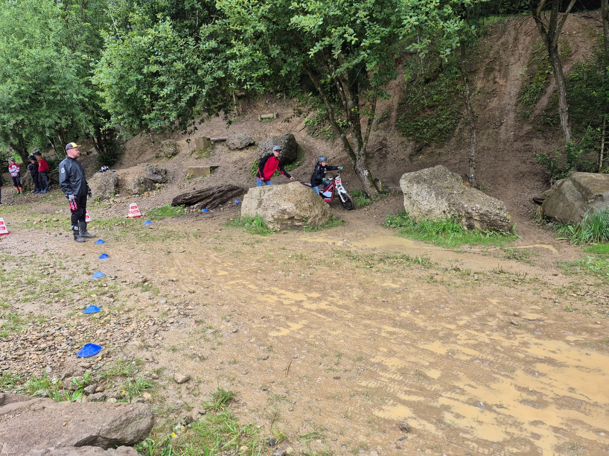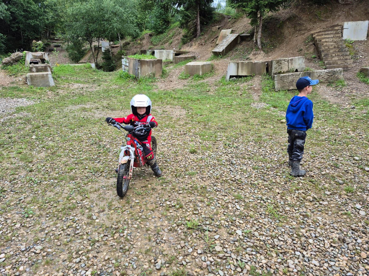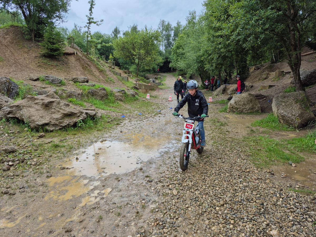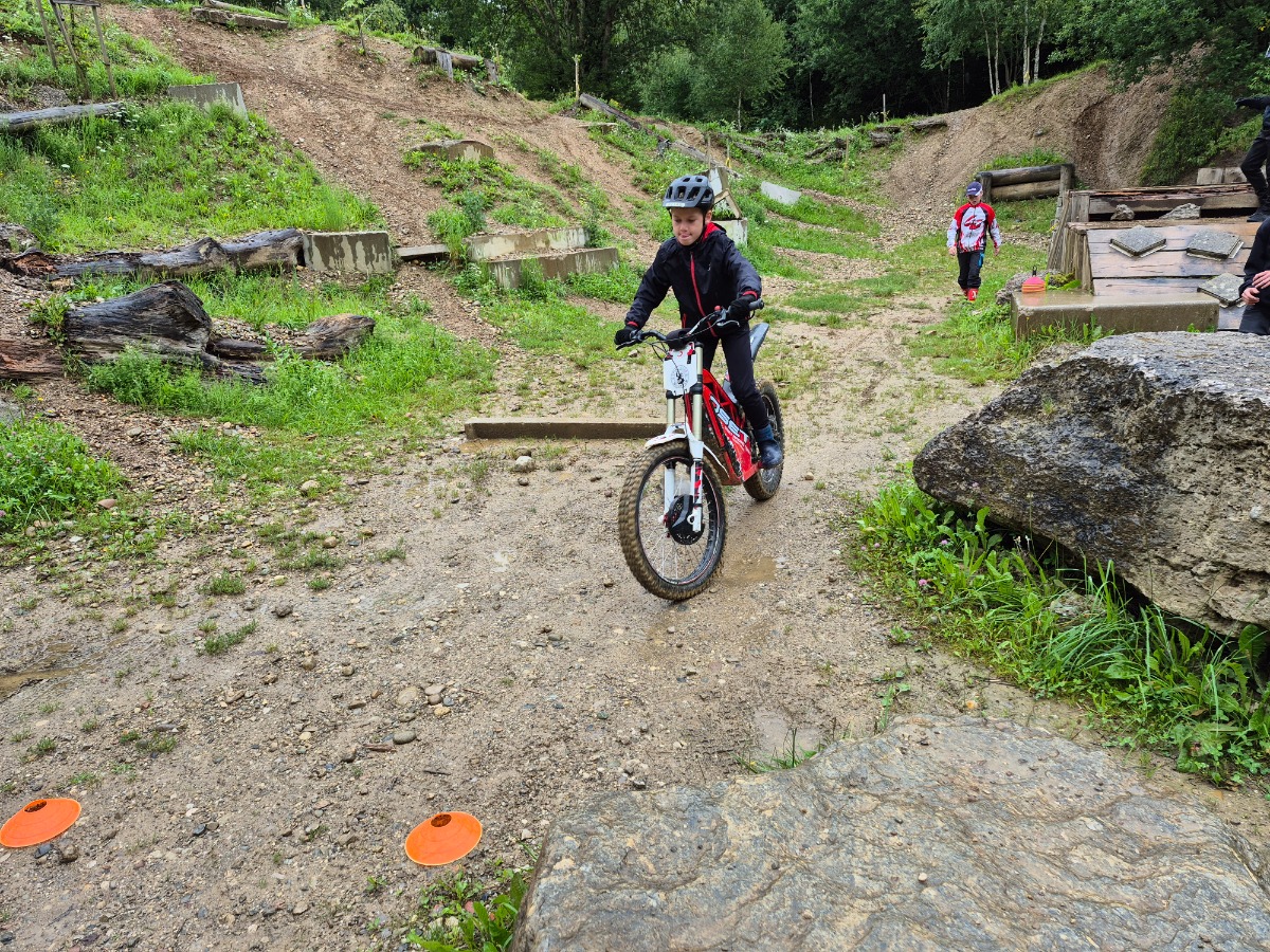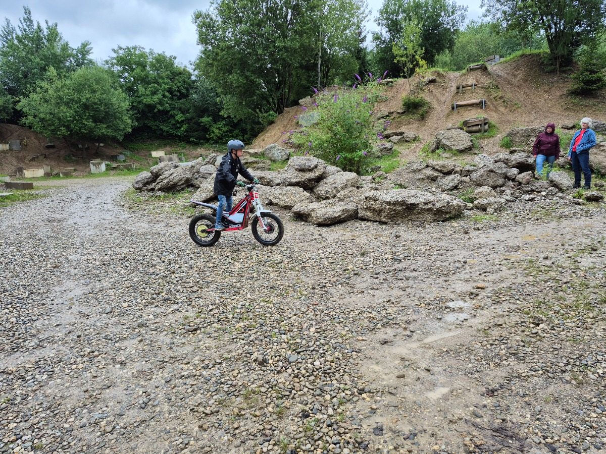 Letzten Samstag den 02.08.2025 kamen die Engelsberger Kinder wieder zu uns in den Trialpark des MSC Engelsberg. Die Plätze für das Ferienprogramm waren wieder sehr schnell ausgebucht, so das einige auf der Warteliste standen u. leider nicht teilnehmen konnten. Trotz des regnerischen Wetters hatten die Kinder im Alter von 7 – 11 Jahren ihren Spaß auf den Elektro Trial Motorrädern. Es dauerte nicht lange bis sie ein Gefühl für die Motorräder entwickelten u. immer sicherer durch die kleinen Hindernisse steuerten. Desto sicherer sie wurden, umso mutiger wurden sie auch, u. wagten sich schon einmal ins Gelände, was auch prima klappte. Die Anstrengung u. Konzentration auf den Motorrädern macht natürlich durstig u. hungrig. Dafür gab es zwischendurch auch Trinkpausen für die Kids u. zum Abschluss des Trial Fahrens noch Bratwurstsemmeln u. Pommes, was begeistert angenommen wurde. Um den Kindern einen weiteren Einblick in die Kunst des Trial Fahrens zu zeigen, präsentierten unsere MSC Trialer, vom kleinsten Fahren im Alter von 4 Jahren bis zu den Erwachsenen, was auf den Trial Motorrädern so alles bei ausreichend Training möglich ist. Die Vorführung verfolgten die Kinder u. auch die Eltern mit Begeisterung. Dafür gab es auch viel Applaus. Für die Betreuung der Kinder haben sich viele MSC Mitglieder eingesetzt. Vom Einweisen in die Fahrtechnik, beim Führen an schwierigen Hindernissen, bis zur Versorgung vom essen u. trinken. Ohne die Unterstützung der vielen motivierten Betreuer wäre das Ferienprogramm nicht so reibungslos u. erfolgreich durch zu führen gewesen. Dafür möchte ich noch einmal, allen Helfern für die erfolgreiche Veranstaltung, herzlich danken.