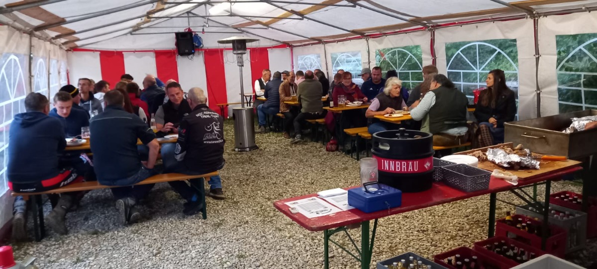 Beim 1. Trial Oktoberfest im Trialpark des MSC Engelsberg wurden 6 Sektionen trainiert u. zusätzlich noch 3 außergewöhnliche Sektionen eingebaut. Tobi Bauer steckte eine Fußgänger – Sektion die es in sich hatte, Anton Hellmeier baute eine Hufeisen – Sektion ein u. bei der 3ten Sektion durfte Groß u, Klein sich im Nageln beweisen. In den 3 Spaß – Sektionen hatten die Teilnehmer, wie auch die Zuschauer viel Spaß, es wurde viel gelacht, mitgefiebert u. lautstark angefeuert. Im Anschluss wurden den Trainingsbesten, Lebkuchenherzen des MSC Engelsberg durch unseren 1. Bürgermeister überreicht. Anschließend wurde der Festakt im kleinen Festzelt durch unseren 1. Bürgermeister Martin Lackner mit einem Fass-Anstich u. einem O’zapft is eingeleitet. Mit den ersten Maßen hat der Bürgermeister mit der Vorstandschaft auf einen zünftigen Abend angestoßen. Dann wars aber auch gut mit den formellen Angelegenheiten. Alle Gäste hatten schon Durst u. Hunger, der Ansturm auf das Hervorragende Spanferkel war dementsprechend groß. Somit konnte nach einer gelungenen Veranstaltung, der Abend in seinen gemütlichen Teil übergehen.
