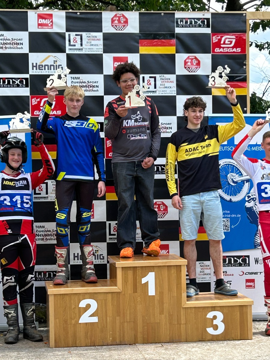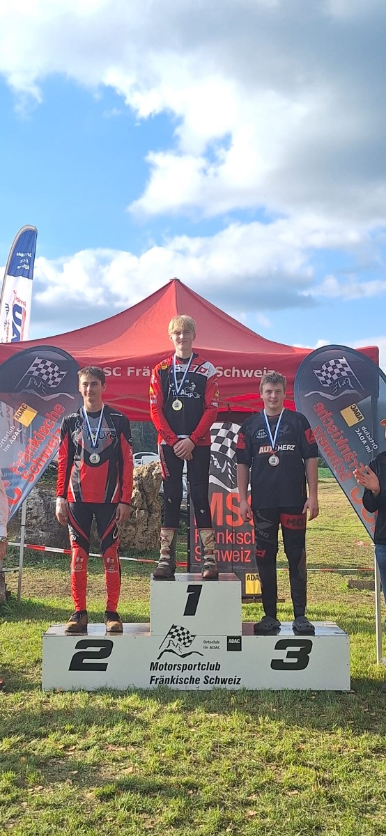 Sensationeller Erfolg für die MSC Trial Fahrer bei der JD 2025.                                                                         Schon in Großheubach legte Moritz Loibl mit zwei zweiten Plätzen die Grundlage für den deutschen Jugend Trial Cup in der Klasse 3. Diese großartige Leistung steigerte er noch weiter u. legte in Kerzenheim souverän u. nervenstark zu. Dort holte sich Moritz am Samstag den Tagessieg in der blauen Spur. Am Sonntag dem 4. u. letzten Lauf zur Deutschen Meisterschaft, machte Moritz es noch richtig spannend, in einer sehr engen letzten Runde, konnte er sich mit einem Punkt Vorsprung den 1. Platz sichern. Mit den zwei Siegen in Kerzenheim sicherte er sich den Meistertitel zum Deutschen Jugend Trial Cup 2025. Eine großartige Einzelleistung.