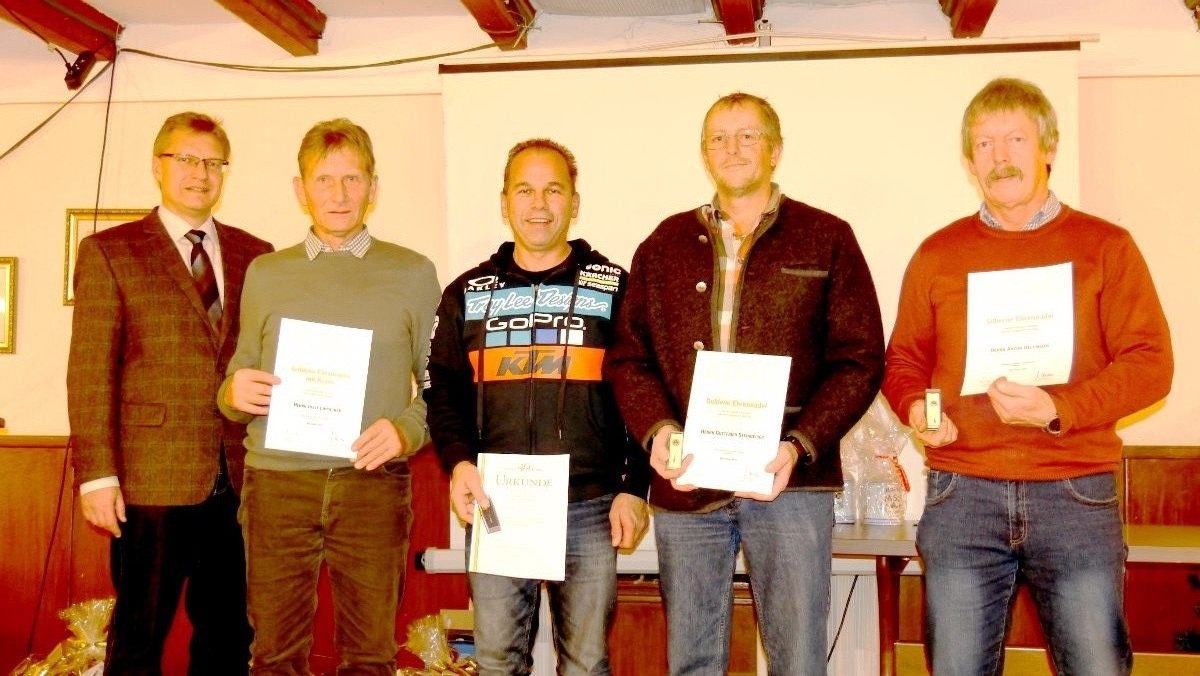 Clubmeister 2017 des MSC Engelsberg ist „Urgestein“ Sepp Lippacher, der 78,81 Punkte am Ende aufweisen konnte. Platz zwei ging an Albert Hobmaier mit 74,90 Punkten, vor Maxi Burgstaller mit 66,45 Punkte. Den 4. Platz belegte Georg Herzinger mit 64,13 Punkte und der 5. Platz ging an Raphael Riml mit 62,50 Punkten. Alle bekamen einen Pokal aus den Händen von Bürgermeister Martin Lackner, der extra zur gut besuchten Jahresabschlussversammlung zum Wirt z` Engelsberg gekommen war. Lippacher freute sich über den Wanderpokal, außerdem wurde er für seinen tollen Erfolg als A-Cup-Sieger (österreichischer Pokalsieger) im Klassik-Trial Pre 65 geehrt. Zudem konnte Lippacher auch noch einen Geschenkkorb in Empfang nehmen. Für besondere Verdienste um den Engelsberger Motorsportclub wurden lt. Ehrenordnung einige Geburtstagskinder beschenkt, eben Sepp Lippacher, dazu Peter Kaiser, der 34 Jahre lang Kassier des Vereins war, Wilfried Olf, der Münchner, der sehr fleißig im Verein mithilft und Robert Wimberger, ebenfalls ein fleißiger Punkterichter und Sektionsbauer.